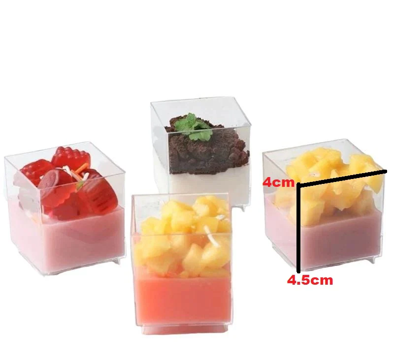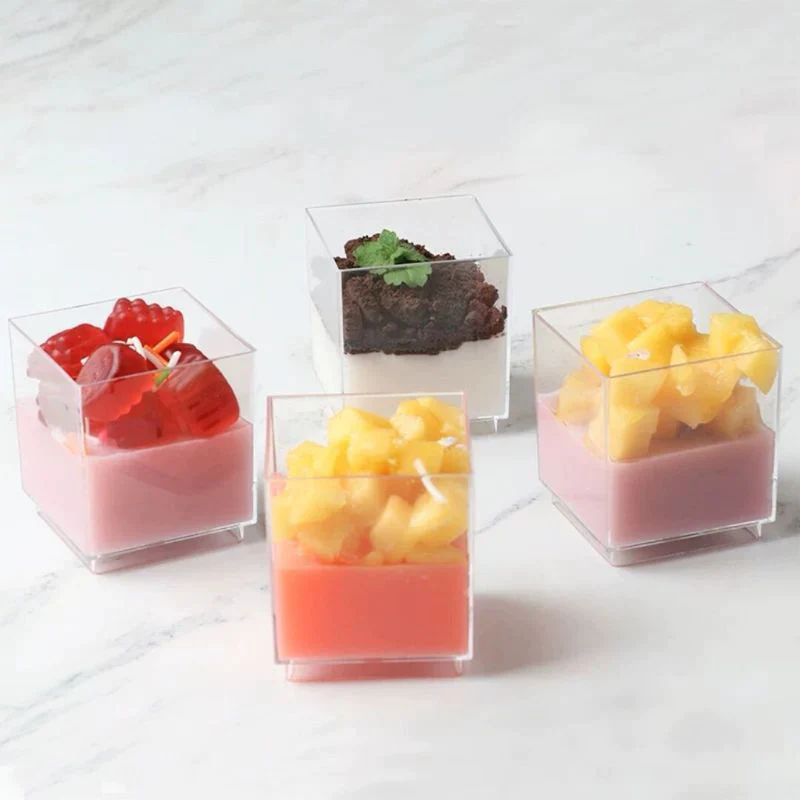 The square shape of these mini dessert cups adds a modern and sophisticated touch to any table setting. Made from high-quality acrylic, they are crystal clear, allowing your culinary creations to shine. Whether you’re hosting a wedding, corporate event, birthday party, or casual gathering, these cups are sure to impress your guests.